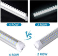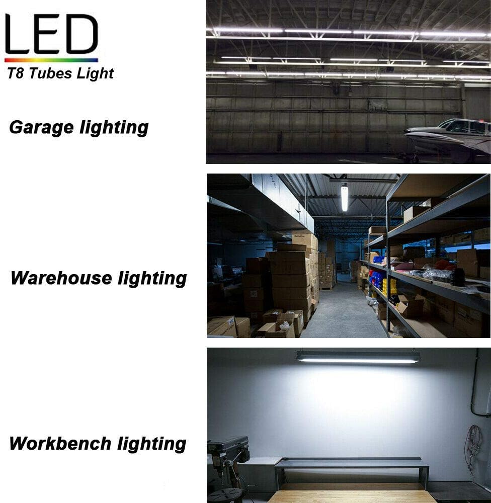 Super Bright TOPTRONED; 8FT LED shop light has up to 18500lm output. 4 row LED chips, V-shape 270-degree angle design, which shed more light on your products and makes products brighter and better Energy Saving Each led lights has 100w low power consumption. Compare with fluorescent lights, save up to 75% on your electricity bill by replacing fluorescent tubes Long lifespan High quality led chips and housing materials make sure it has high light efficiency and long lifespan. Plug and Play These 8FT led shop lights could plug & play or be hardwired to wall switch,solving the difficult to install them Just use the included snap joints to hang it up and insert the plug to light it on Linkable You could link up to 4 lights together with included 48 inches connecting cords or small connector, reducing your installation cost and time Wide Application Perfect for garage, storage area, workbench, basement, home, barn, office, station, attic, workshop, general lighting, display area etc. Packing List